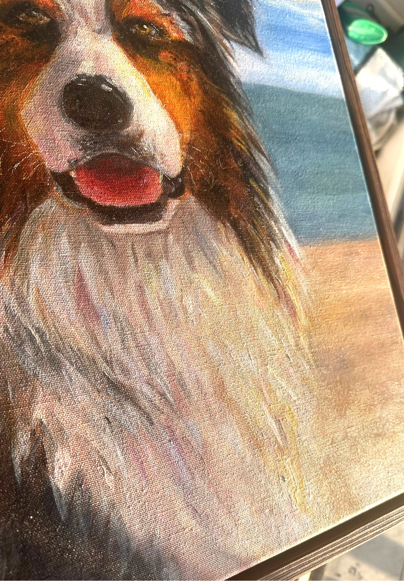 Dieses Ölportrait entstand als Erinnerung an Niju, der viele Jahre treuer Begleiter war. Ich wollte seine freundliche, kluge Ausstrahlung bewahren. Das Bild zeigt ihn am Meer und soll seinen Platz im Herzen weiter sichtbar machen.