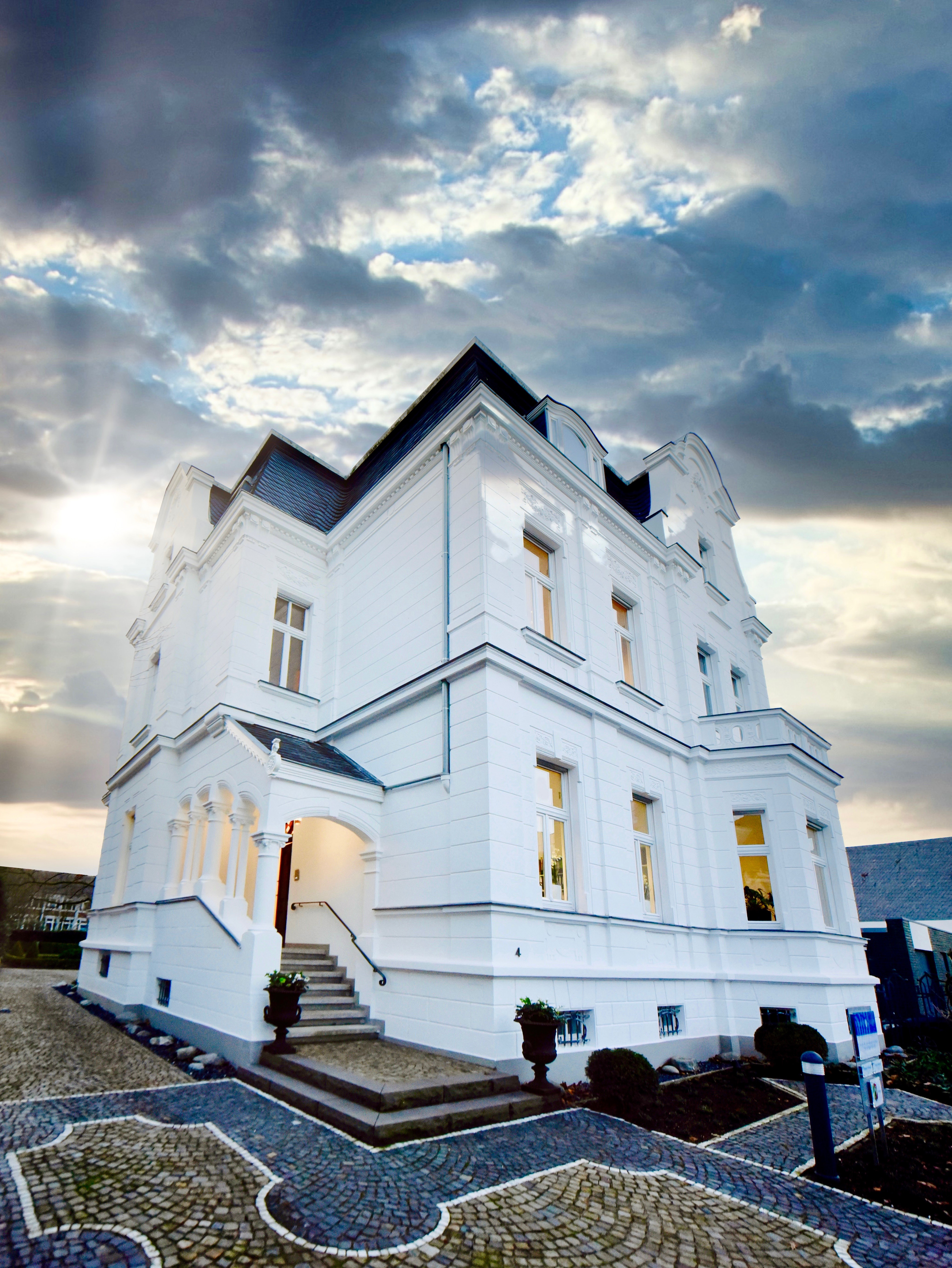 Für die bocholter Kanzlei Stellmach & Bröckers entstand dieses Weihnachtskarten-Design, das das historische Kanzleigebäude in den Mittelpunkt stellt. Die Illustration wurde in einem klaren, winterlichen Blau-Weiß gehalten – modern, dem Branding der Kanzlei entsprechend, aber mit klassischem Bezug zur Architektur des Hauses.
